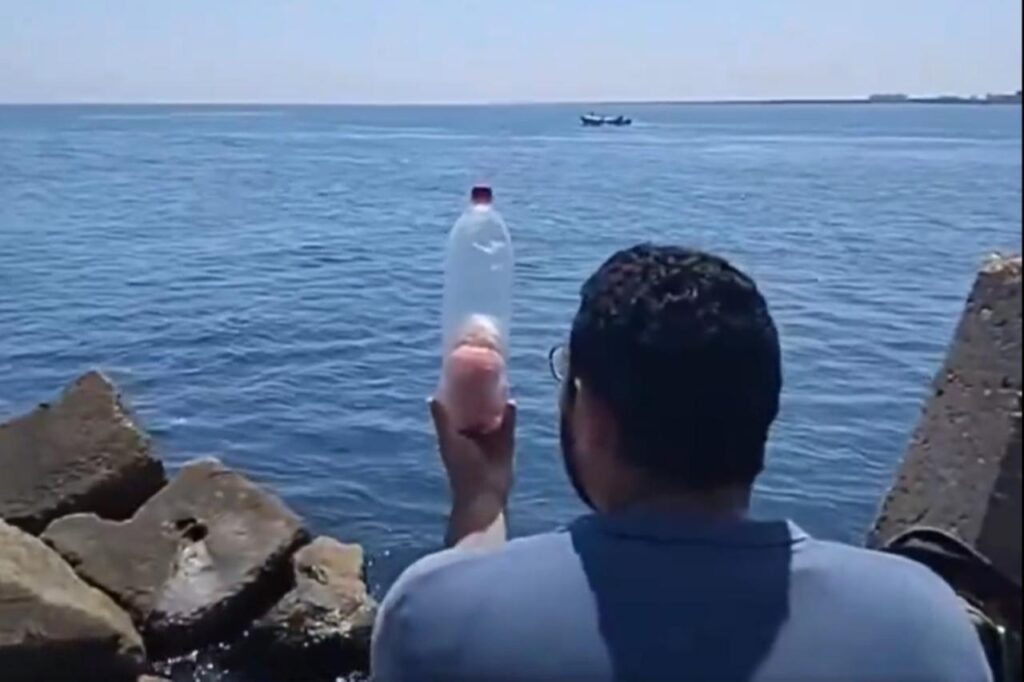 This leads to the desperate attempt to throw bottles filled with rice and grains into the sea with the hope that it may reach the beach of the Arabs of Gaza. This is what hopelessness looks like.